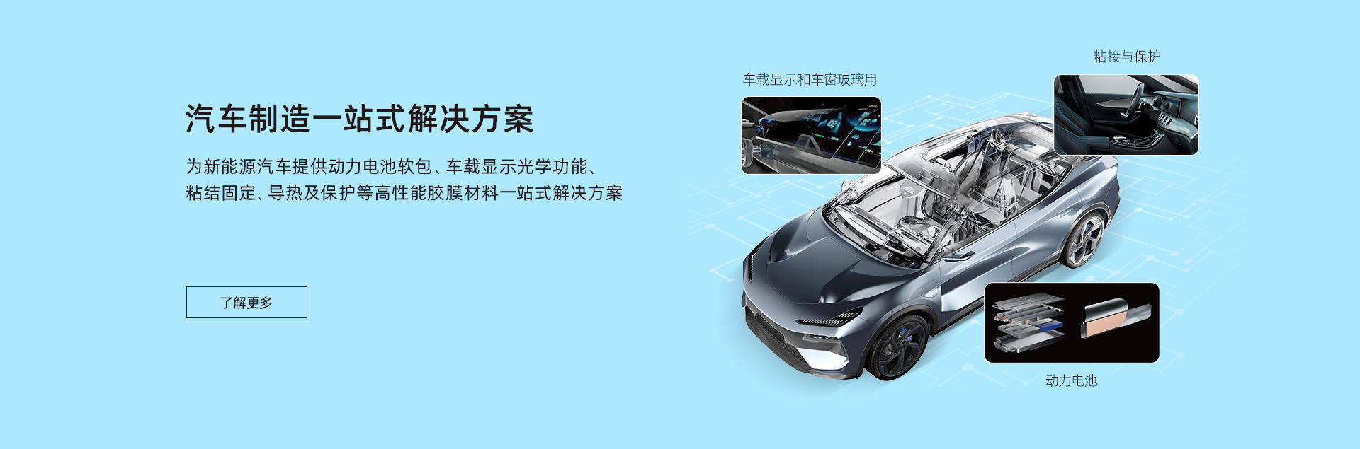 致力于為汽車制造、消費電子、智慧顯示端口等行業(yè)客戶提供包括新能源材料、電子功能材料、光電顯示材料、有機硅材料在內(nèi)的產(chǎn)品研發(fā)、生產(chǎn)、銷售于一體化服務,建立了專業(yè)的市場營銷與技術(shù)服務團隊,為客戶提供高性能膠膜材料一站式解決方案。